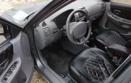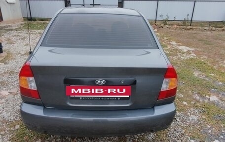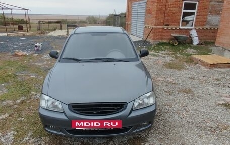 Автомобиль Hyundai Accent в бежевом цвете, 2005 года выпуска, с пробегом 300 000 километров, объемом двигателя 1,5 литра и мощностью 102 лошадиных сил, с механической коробкой передач и передним приводом, продается по доступной цене...